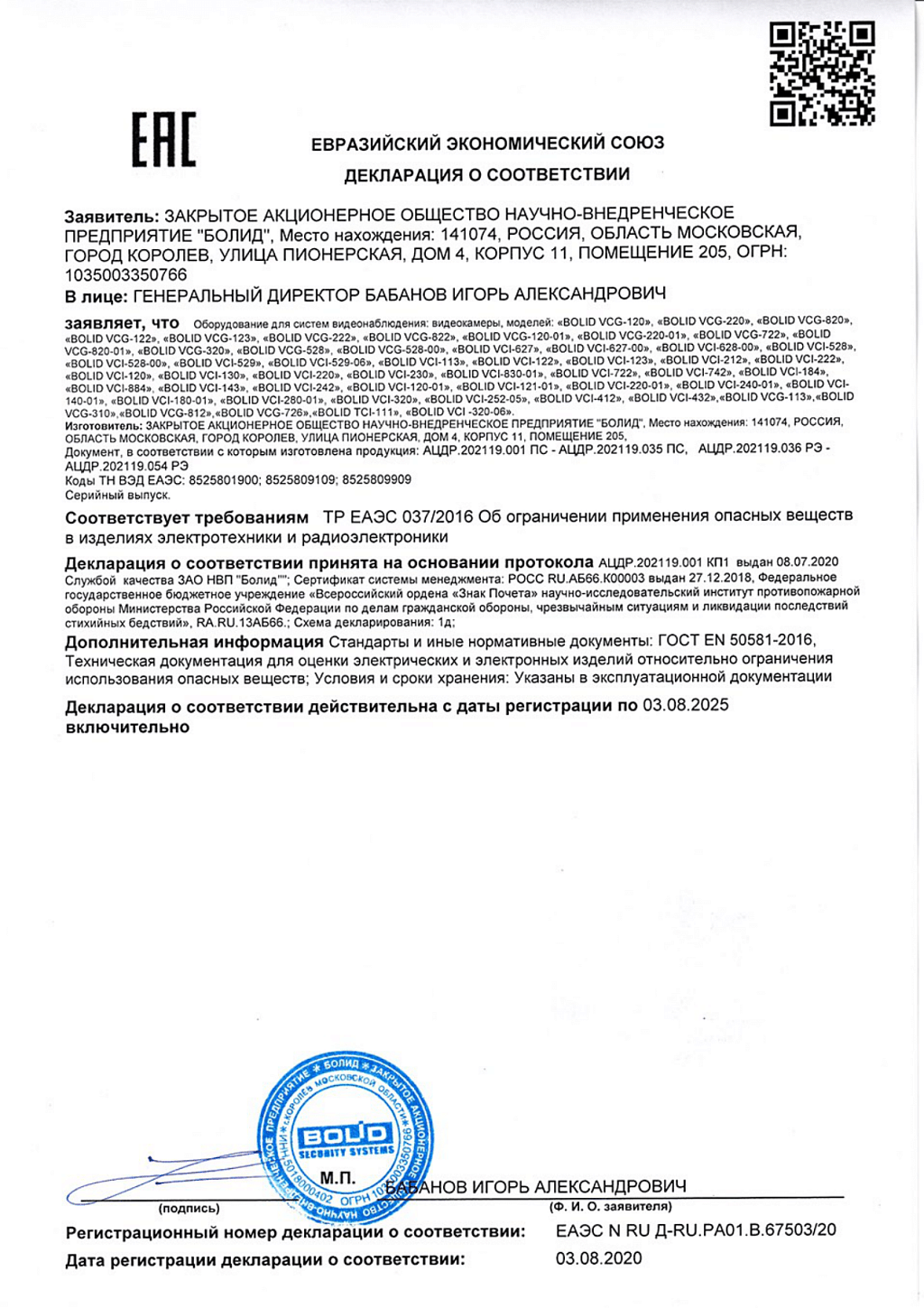 • Производитель BOLID