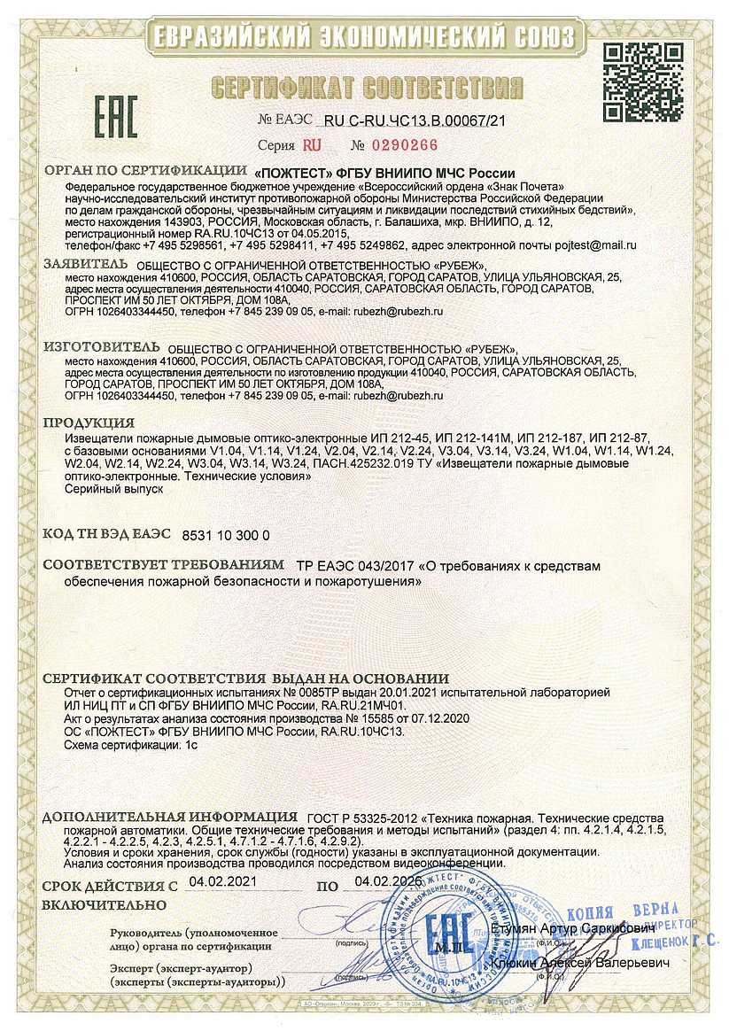 Состоит из розетки и датчика, представляющего собой пластмассовый корпус, внутри которого размещена оптико-электронная система и плата с радиоэлементами. Разъемное соединение датчика с розеткой обеспечивает удобство монтажа и простоту обслуживания извещателя.