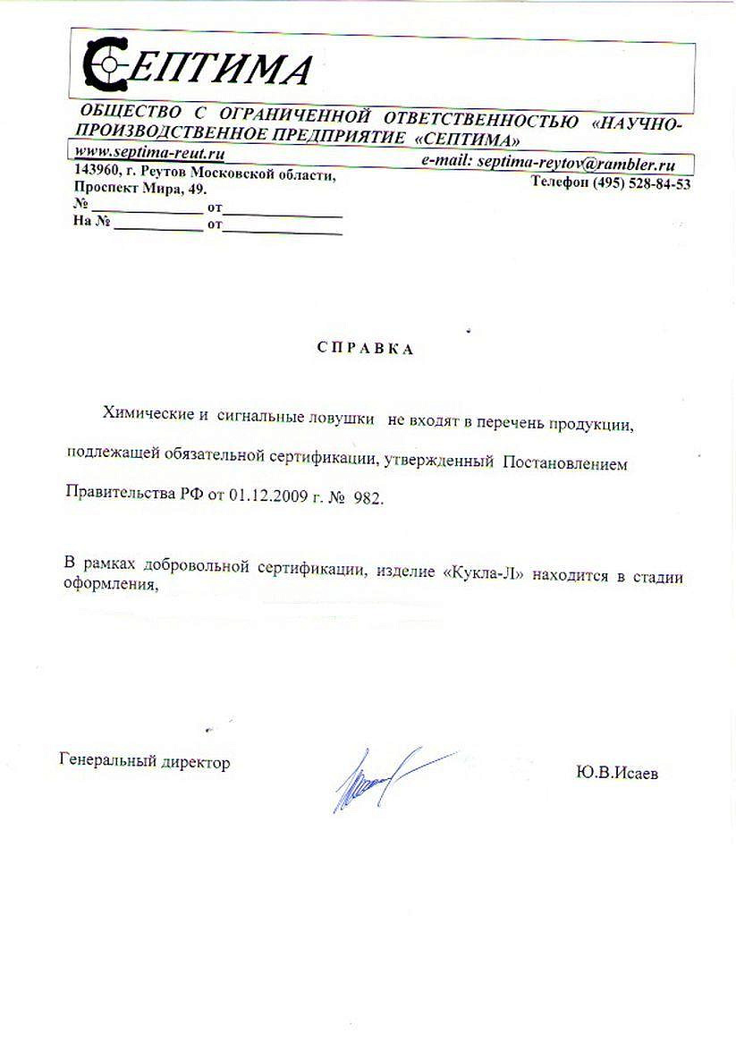 Ловушка Кукла-Л изготавливается в виде пачки денег объемом сто листов. Она предназначена для создания условий, обеспечивающих задержание преступников непосредственно после ограбления банка, обменного пункта валюты и пр. При изъятии ловушки с места установки обеспечивается моментальная подача сигнала тревоги на пульт охраны, спустя три минуты – срабатывание установленных внутри нее пиротехнических элементов с интенсивным дымообразованием.