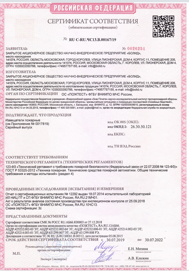 -Выдача извещения "Пожар" как при превышении максимального порога, так и при изменении градиента температуры
