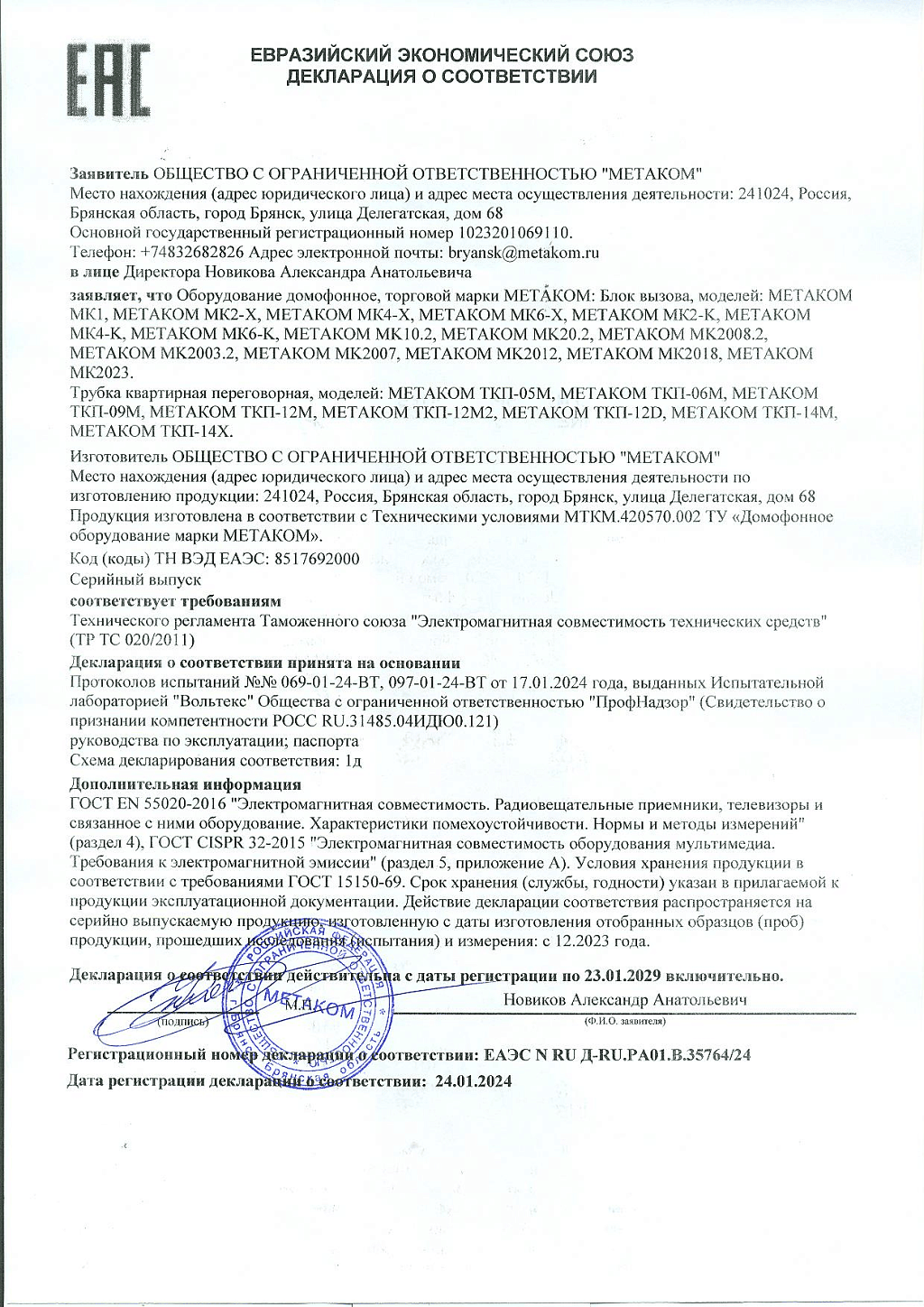 Коммутатор координатный используется для коммутации абонентских линий в домофонных системах на базе вызывных панелей МЕТАКОМ и рассчитан на подключение до 80-ти абонентов. Индекс “D” в названии коммутатора означает возможность подключения двух вызывных панелей. Для установления связи с абонентом вызывная панель по линии DTx передает в коммутатор номер вызываемого абонента. Коммутатор, в соответствии с номером абонента, включает один из 8 (16-и или 22-х) ключей шины «Десятков» и один из 10-и ключей шины «Единиц», обеспечивая тем самым подключение к разговорной линии домофона требуемой абонентской трубки. При установке соединения устройство выбирает разговорную линию (LN1 или LN2) той вызывной панели, от которой был принят номер абонента.