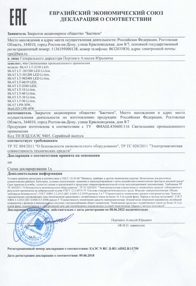 Лампа Skat LT-301200-LED-Li-Ion Бастион купить в Перми в компании ВИПАКС.
