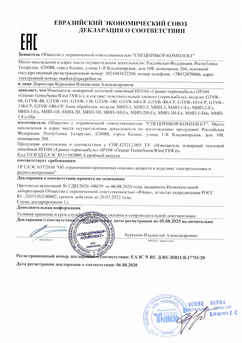 Кабель Термокабель GTSW-СР-180 Спецприбор купить в Перми в компании ВИПАКС.