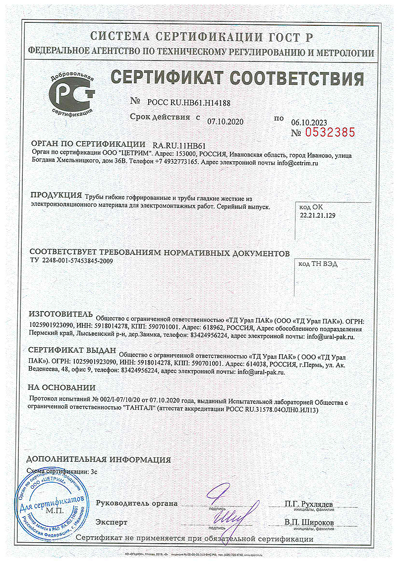 Предназначена для прокладки в электрических, телефонных, компьютерных, телевизионных сетей, работающих при электрическом напряжении не более 1000 вольт. Зонд (металлическая проволока) предназначен для удобства монтажа. Гофрированная труба из ПНД предназначена для монтажа скрытой и открытой проводки в потолках, стенах, полах (без доступа ультрафиолета).