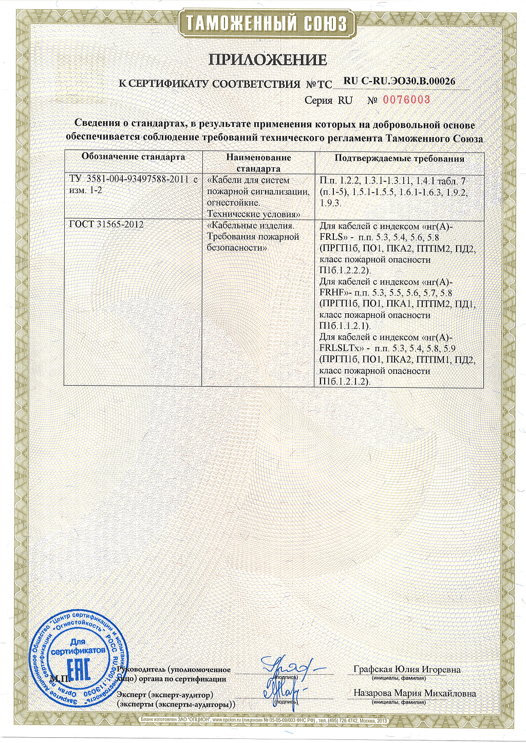 Применяется для одиночной или групповой прокладки (с учетом объема горючей загрузки) цепей питания электроприемников систем противопожарной защиты, операционных и реанимационно-анестезионного оборудования больниц и стационаров, а также в других важных системах жизнеобеспечения, которые должны сохранять работоспособность в условиях пожара.