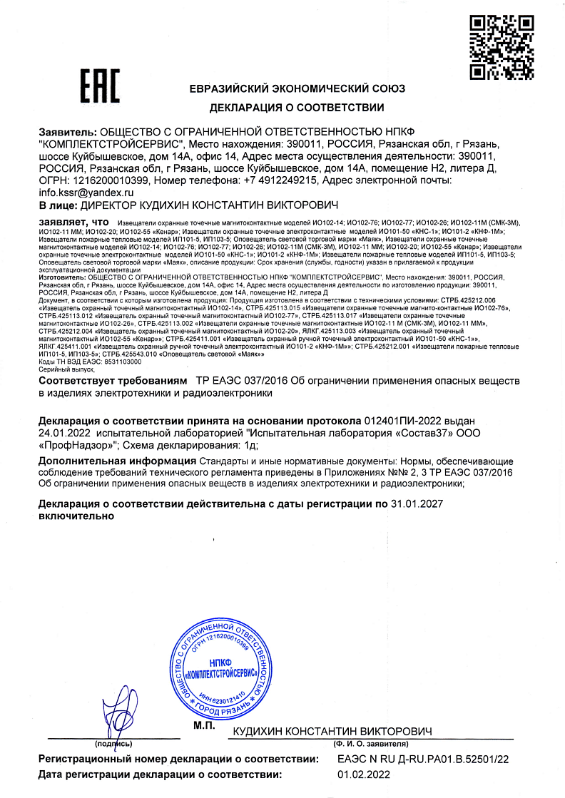 Извещатель ИО-102-14 охранный точечный магнитоконтактный Комплектстройсервис купить в Перми в компании ВИПАКС.