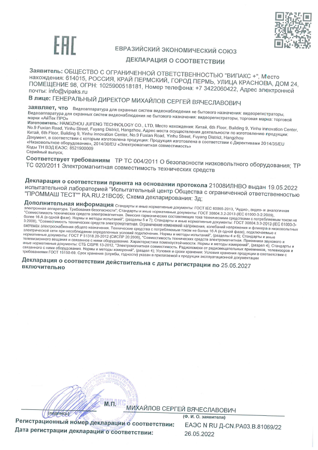 Устройство записи профессионального уровня для IP-видеокамер с разрешением до 4K. Обеспечивает запись видеопотоков, обработку, их архивацию и передачу записанных данных по сери интернет. Поддерживаются видеокамеры серии FSm/AI/ FC II с аппаратной видео аналитикой. Позволяет искать изображения содержащее конкретное лицо человека в архиве, создавать списки, управлять базой лиц. В составе, система позволяет организовать двустороннюю связь с объектом, используя мобильное приложение RCam Monitor или Программное обеспечение для персонального компьютера. Встроенные реле «сухой контакт» предназначены для подключение дополнительных датчиков и исполнительных механизмов таких как замки, шлагбаумы или сирена. Хранение видеоданных обеспечивается на HDD-Дисках с общим объёмом до 40Tb