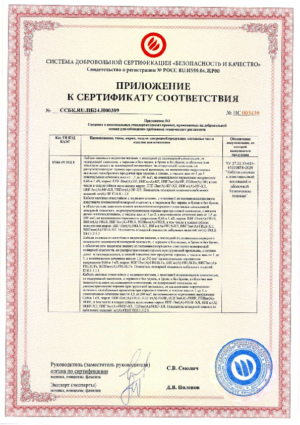 Область применения огнестойких кабелей - для одиночной или групповой прокладки питания электроприемников систем противопожарной защиты, питания оборудования больниц, цепей освещения запасных выходов и путей эвакуации, систем дымоудаления, а также других электроприёмников, которые должны сохранять работоспособность в условиях пожара.